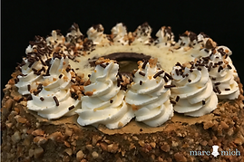 kue lembut yang dilapisi dengan kacang dan whipped cream. dijamin kelezatannya akan membuat kalian teringat dengan permen nougat yang sangat cocok disajikan dengan kopi favorit kalian